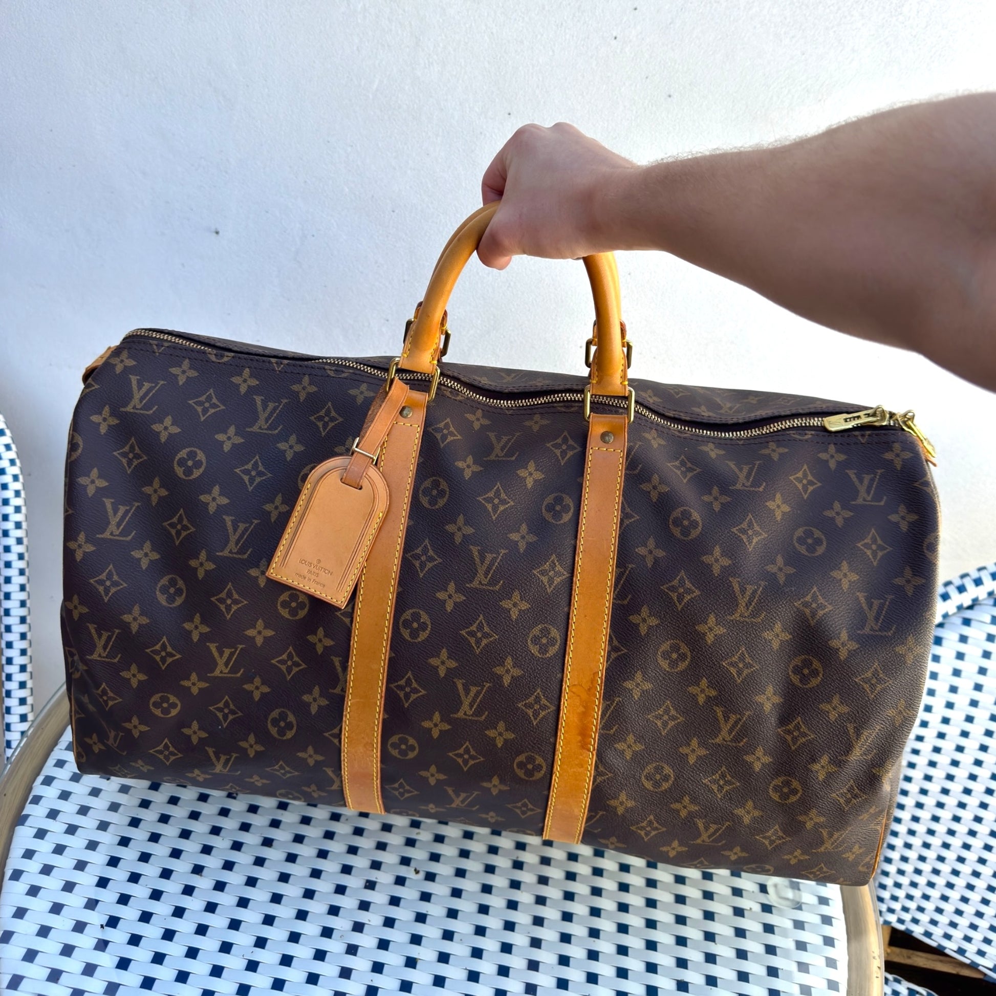 En ikonisk Louis Vuitton Keepall 55 – det perfekte valg til dig, der rejser med stil. Denne model er i den klassiske Monogram Canvas og har den perfekte størrelse til håndbagage hos de fleste flyselskaber.