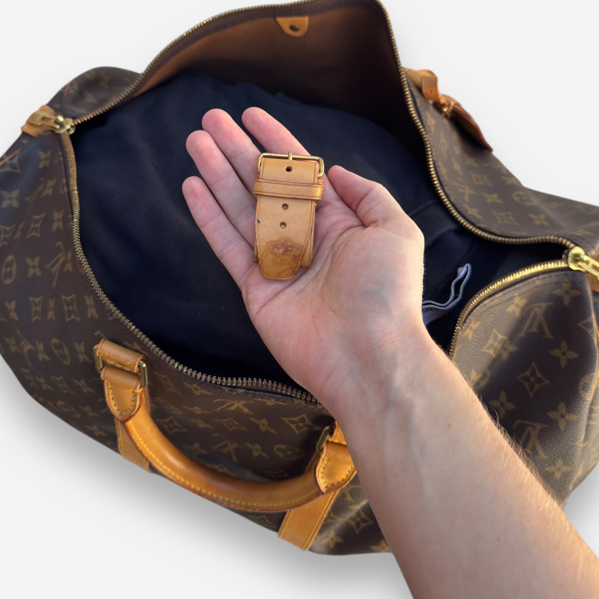 Selvom det er en ældre model, står tasken i super flot stand. Der er enkelte mindre pletter og meget let cracking ved håndtagene, men intet der påvirker funktion eller helhedsindtryk. Læderet har fået den flotte, varme patina, som kun ægte Louis Vuitton-vachetta får med tiden. Du finder ikke mange som denne i lignende stand.