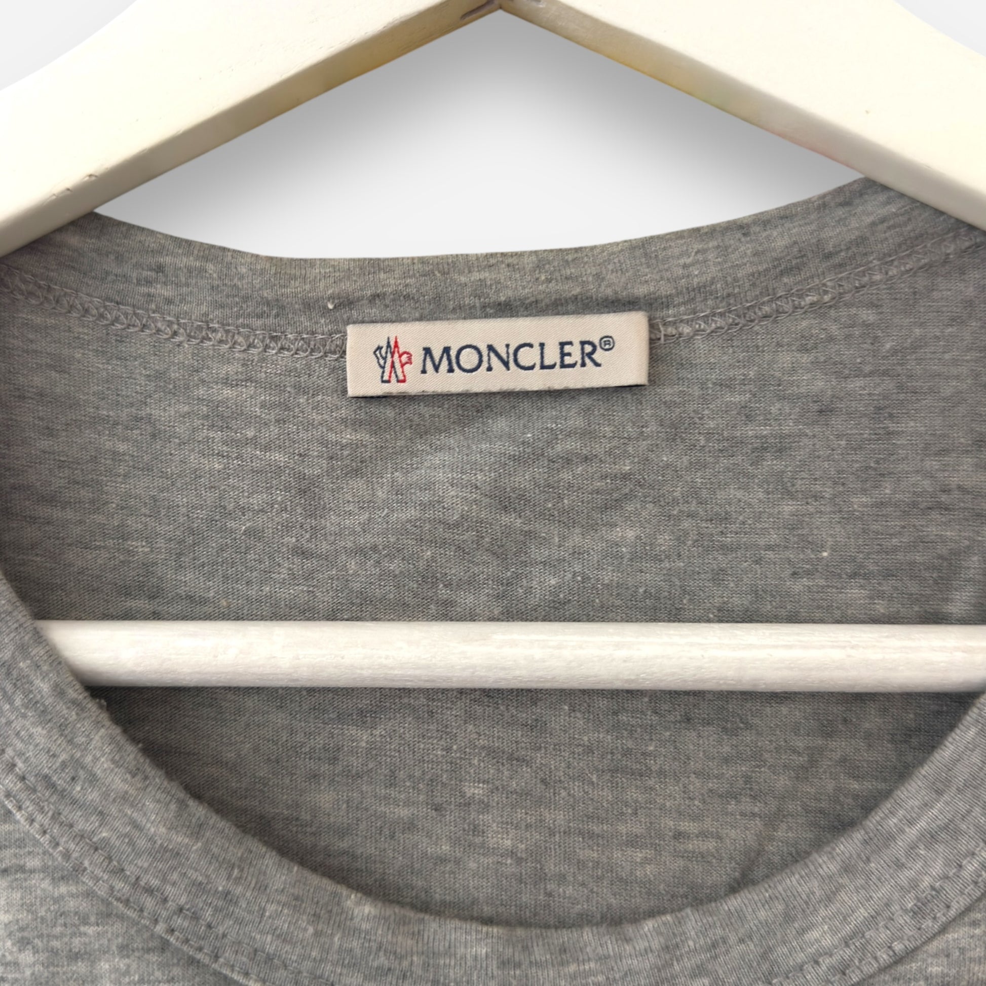 En eftertragtet Moncler t-shirt med cartoon-print og gentaget logo på brystet. Den grå base kombineret med det farverige print giver et fedt unikt look. Ikke nok med det fede design, så er komforten også i top.